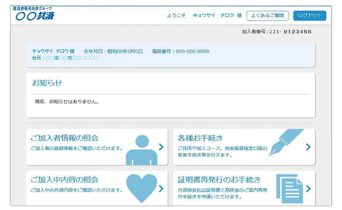 - 入力内容(加入者番号・お名前(カナ)・生年月日・口座番号)が共済取扱団体にお届けの内容と異なる場合、「入力された内容(加入者番号、お名前、生年月日、口座番号)と当グループが保有しているデータの一部に相違があります」とメッセージが表示されパスワードが削除されますが、パスワードの誤りではありません。パスワード・メールアドレス以外の入力項目をご確認ください。